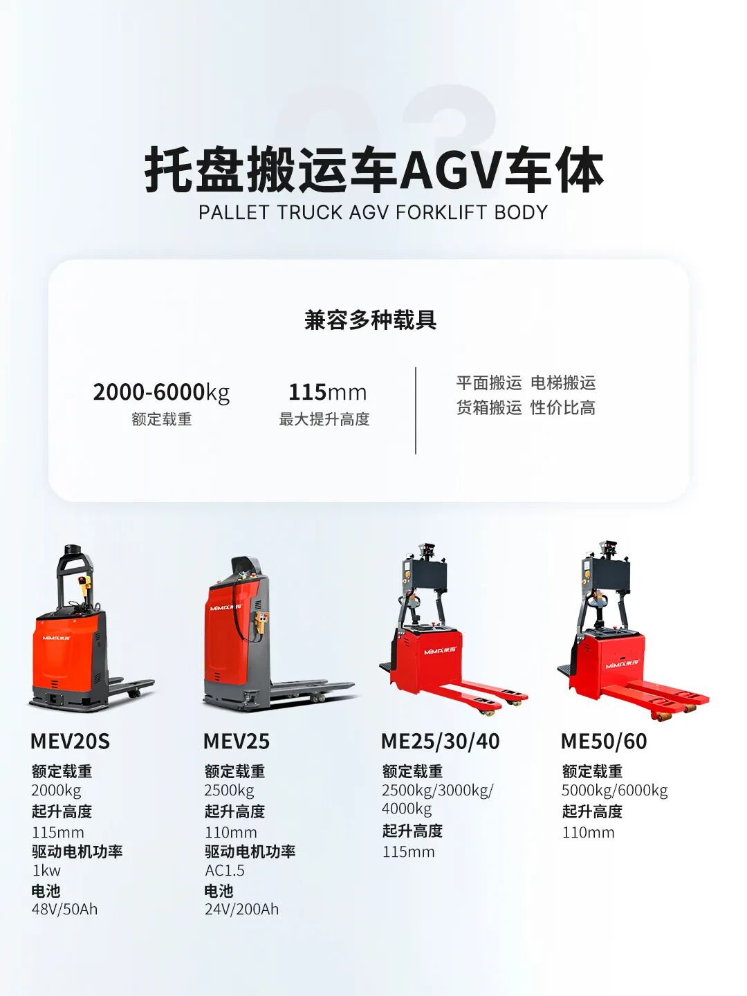 MiMA米玛全系列AGV车体涵盖: