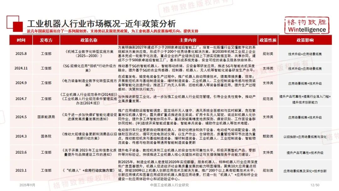 工业机器人、政策支持、市场规模、国产化、细分产品(多关节 / SCARA / 协作机器人)、应用场景(汽车 / 电子 / 金属加工)、海外布局、人形机器人