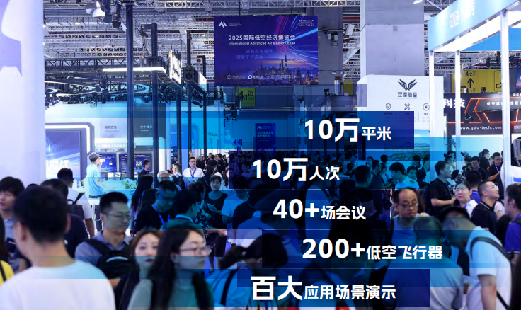 2025展会展会参展商数量近300家,共展示了201架低空航空器(含模型),其中无人机155架,通用飞机34架,eVTOL 12架,超19件全球首发产品、25件全国首发产品在展期亮相。举办40场低空主题会议论坛,2场国家级低空赛事,“百大应用场景”演示活动举办2天3场,超30场合作签约和组织成立仪式。
