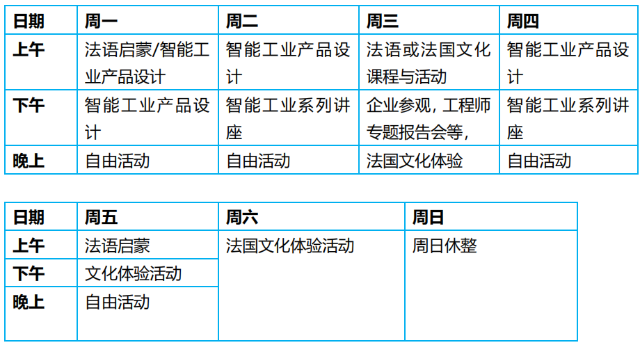 ESTIA工程师学院研习课程、工业实践及实验材料与实验室使用费用,法国申根区旅游医疗保险费用,机场接机与送机服务费用,比亚里茨大学城住宿费用,法国巴斯克地区公共交通通票及集体活动交通费用,抵达当日简餐费用,集体企业参访、工业实践活动及文化参观项目费用