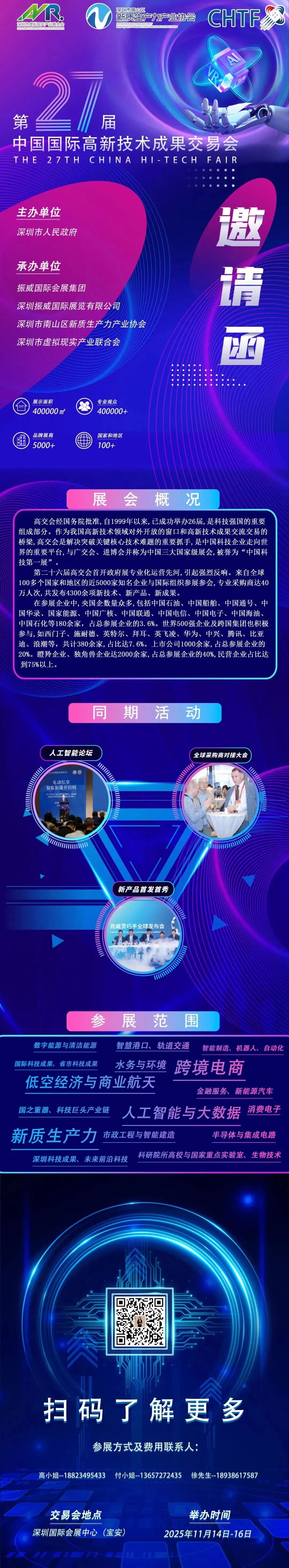 本届高交会与深圳市南山区新质生产力产业协会携手并进,诚邀各企业参加,共同展示前沿成果,分享行业洞察,搭建交流合作的平台!