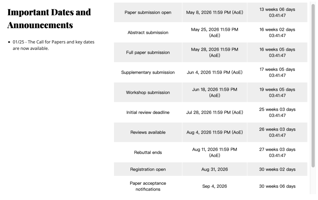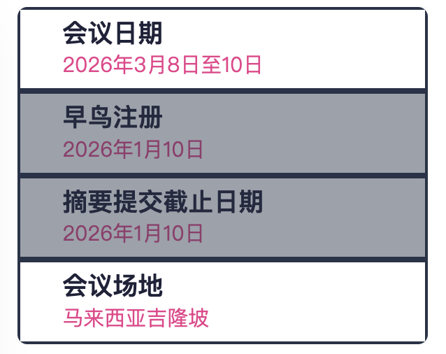 摘要提交截止:2026 年 1 月 30 日(已截止);