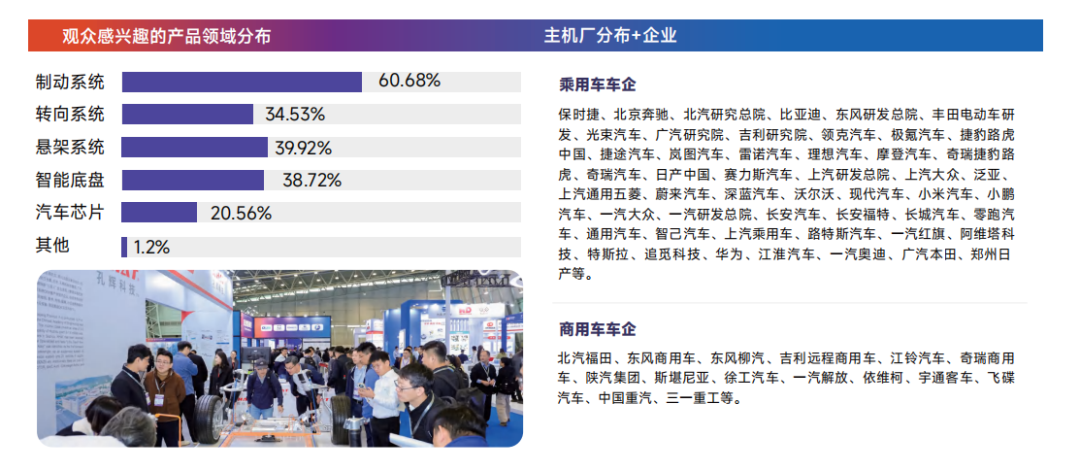 展品范围:制动、悬架、转向、智能底盘、底盘轻量化、生产制造等