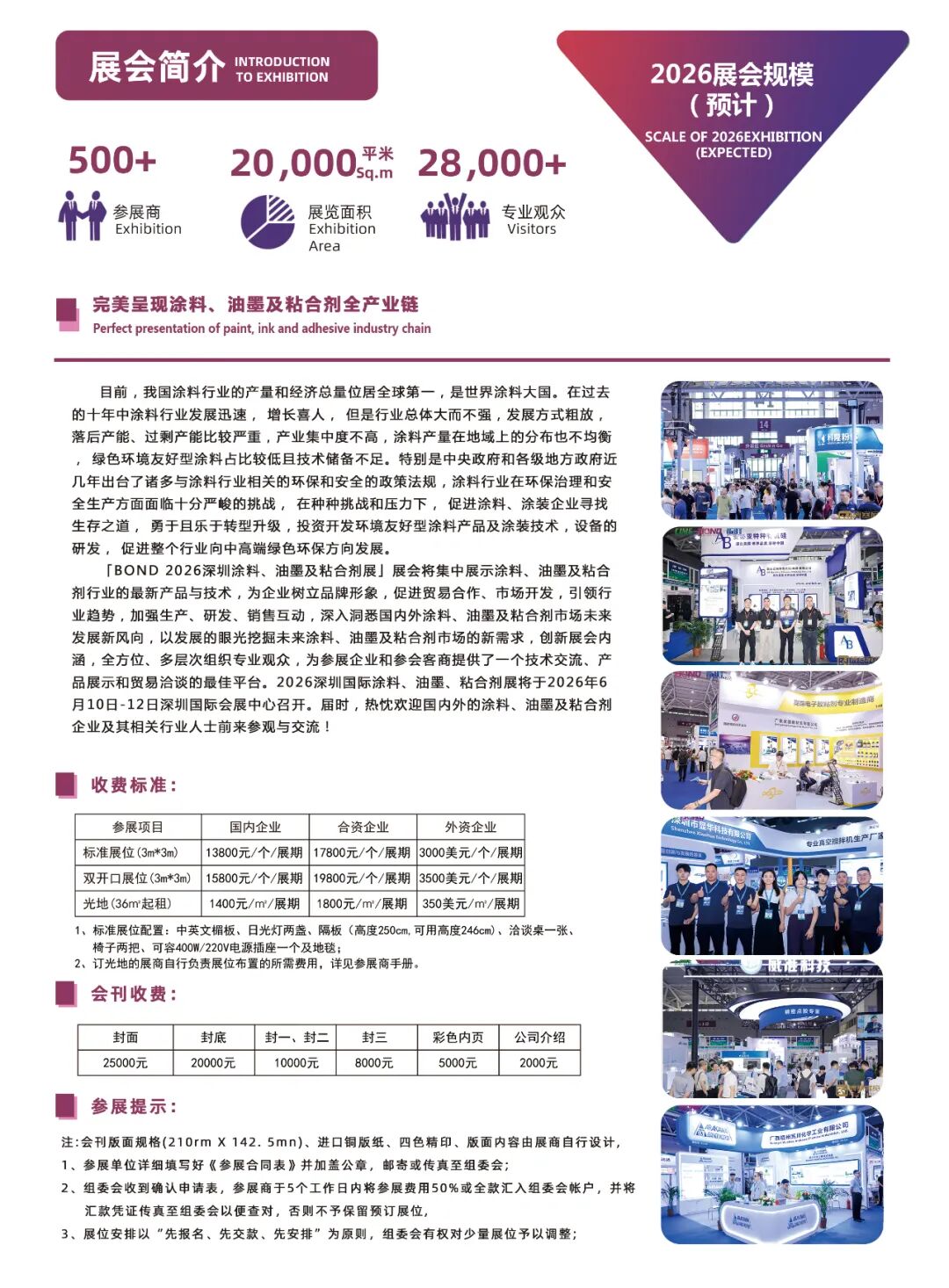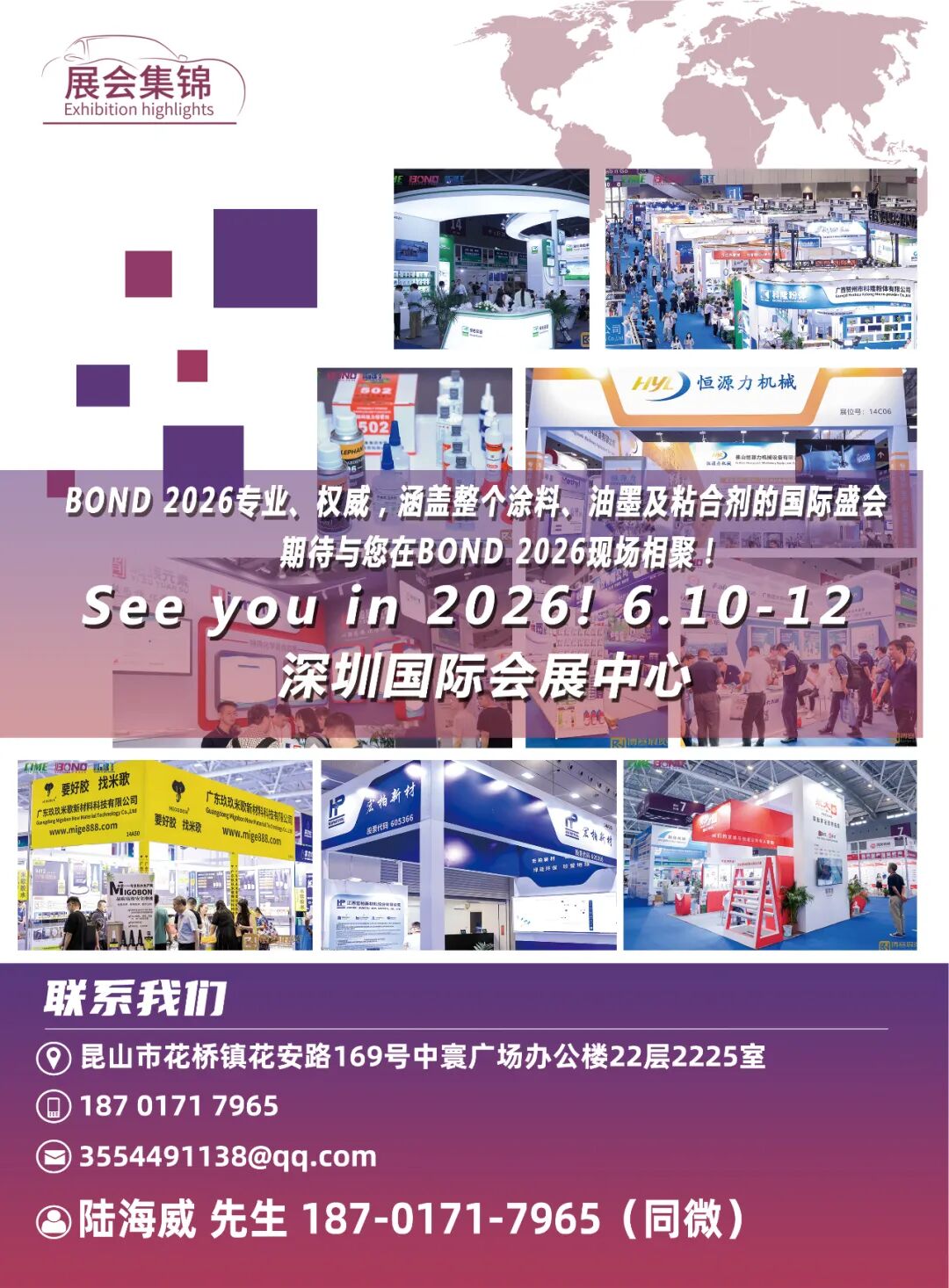 BOND2026第七届深圳胶展致力于促进行业的快速发展,打造值得信赖的商贸平台!2026年6月10-12日深圳国际会展中心(宝安新馆)期待您的到来2026年展位销售已启动敬请咨询 联系人:陆海威 先生手 机:187-0171-7965(同微信号)邮 箱:3554491138@qq.com