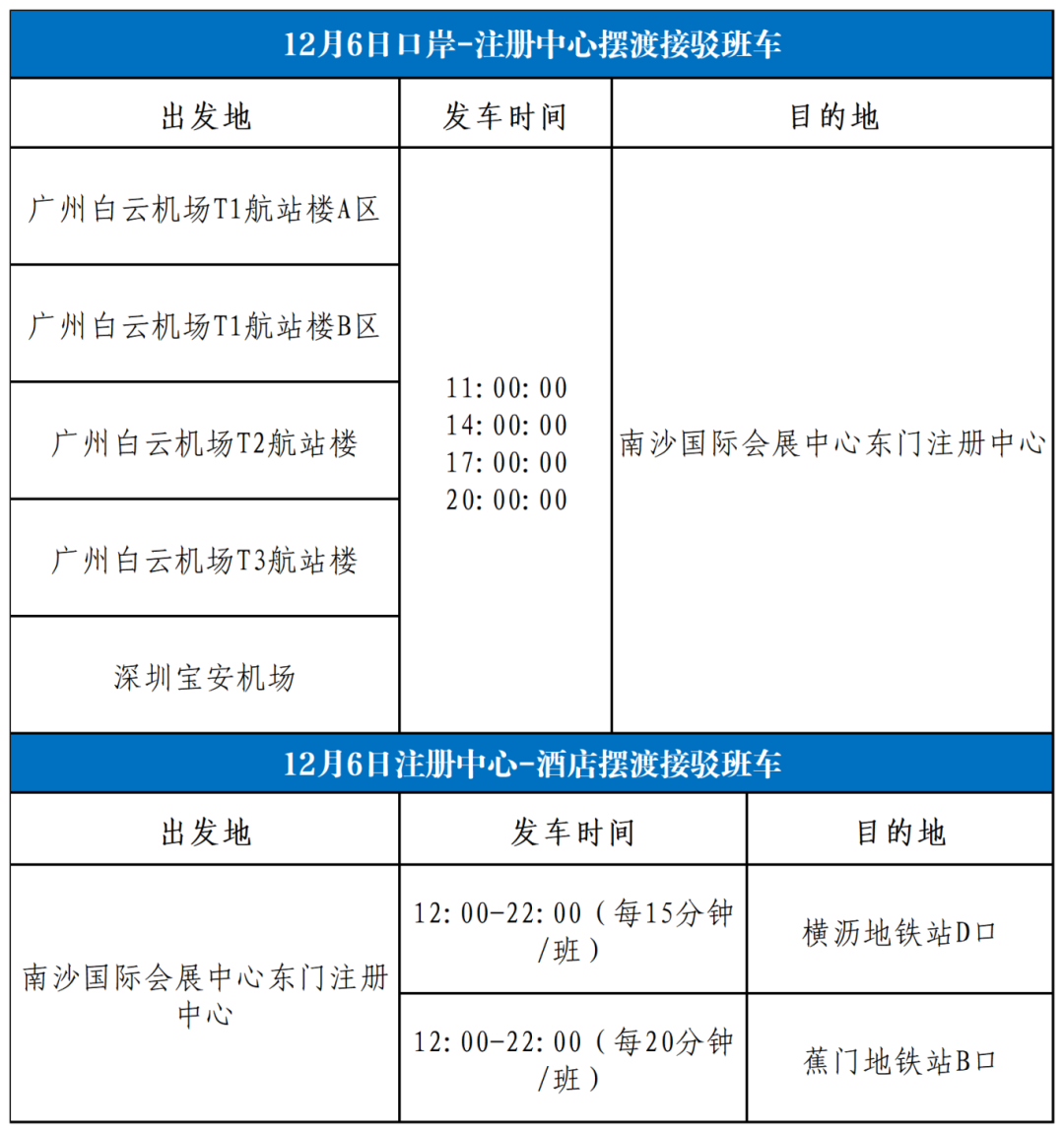 4. 大会离场接驳车乘车位置:南沙国际会展中心(东门)(请留意现场举牌志愿者或工作人员)。