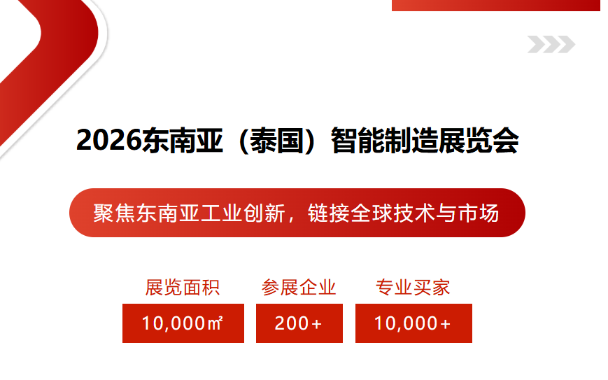 聚焦东南亚工业创新,链接全球技术与市场。2026东南亚(泰国)智能制造展览会(Intelligent Manufacturing Expo Southeast Asia 2026)将于2026年7月22至24日在泰国IMPACT会展中心隆重举办。本届展会旨在助力企业把握东南亚产业升级与转型机遇,共享区域增长红利。同期还将重磅联动东盟泰国数字科技展会、泰中合作博览会,三展同频、资源互通、客商共享,打造东南亚年度工业经贸超级盛会。