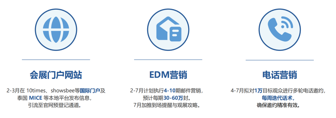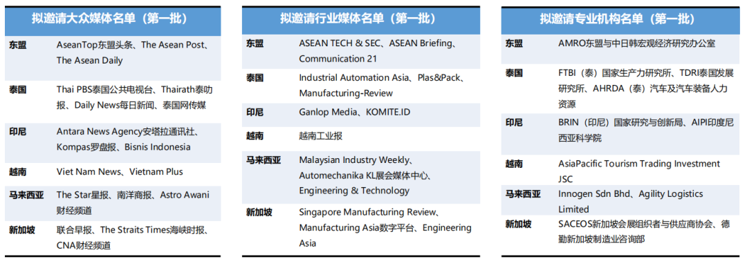 定向邀约,计划通过邮件+电话邀约东盟地区符合目标行业商协会、工业园区、知名企业等专业单位。