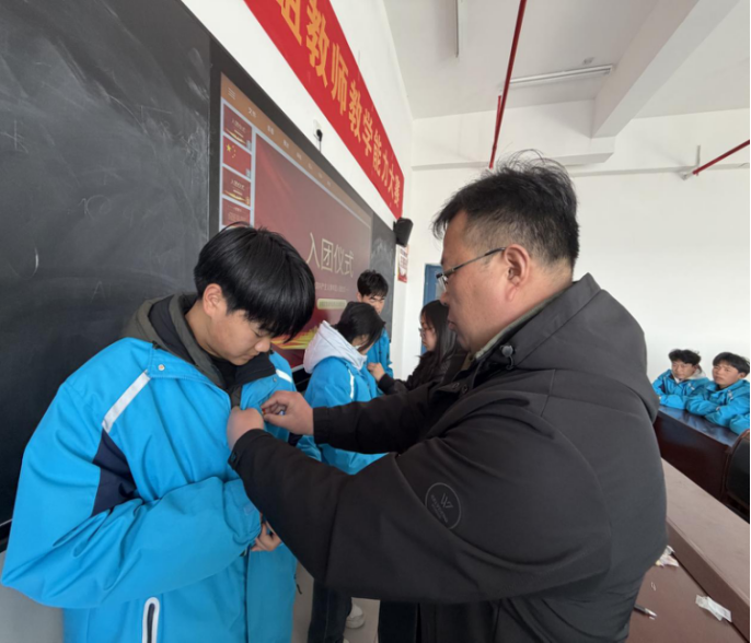 在随后进行的颁发团徽与团员证环节中,袁龙为新团员代表颁发了象征光荣与责任的团徽和团员证。新团员们双手接过,并将团徽庄重地佩戴在左胸前。小小的团徽,不仅是一份荣誉,更是一份沉甸甸的使命与担当。