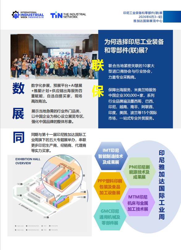 2026年6月3-6日,第十一届印尼工业装备和零部件(联)展将在雅加达国际展览中心举办。本届展会由米奥兰特国际会展与PT. SONGOLAS联合主办,是印尼规模与国际化程度兼具的主题展会,已发展成为中国工业装备和零部件企业拓展印尼市场应用的首选商贸平台。