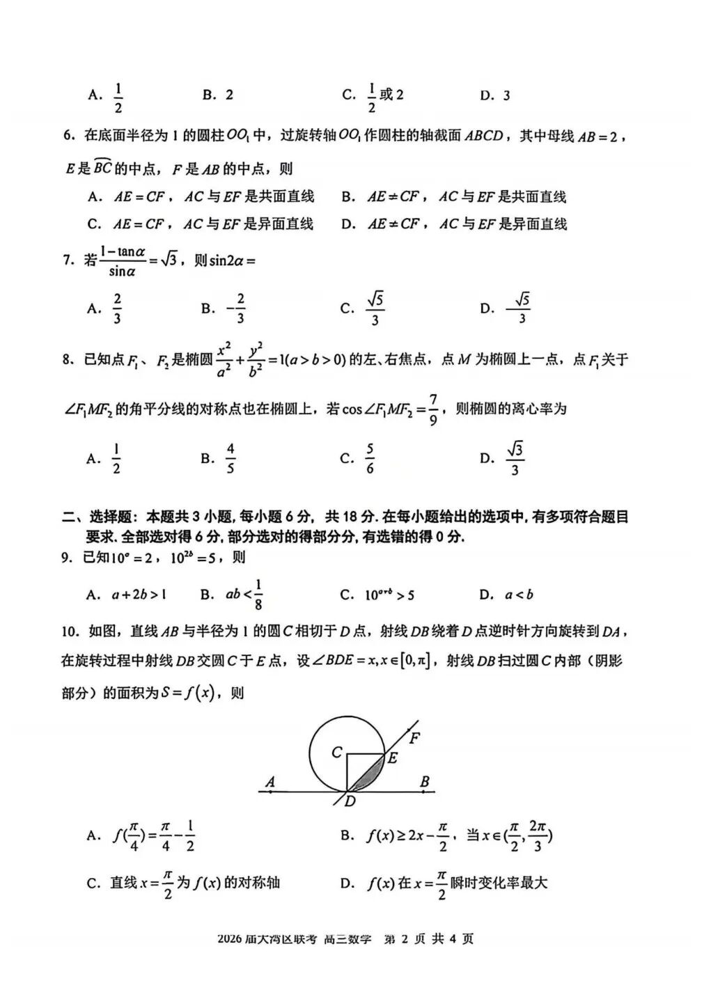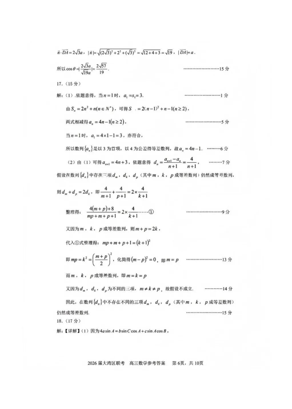 高中数学| 广东省佛山市2026届S6高质量发展联盟高三数学联考试卷及答案