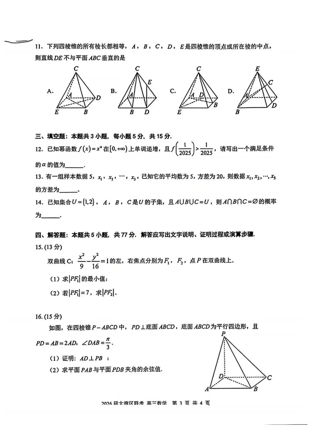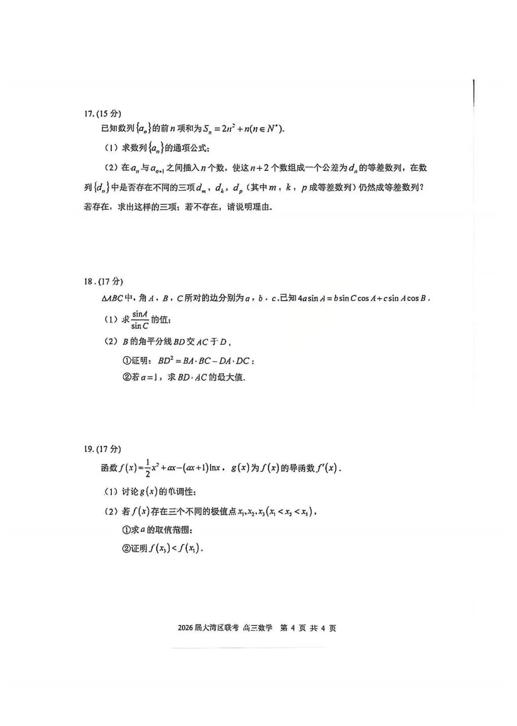 高中数学| 重庆市南开中学2026届高三第二次质量检测数学试卷及答案