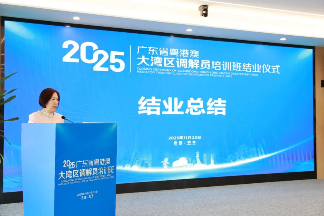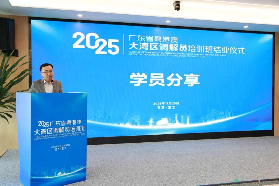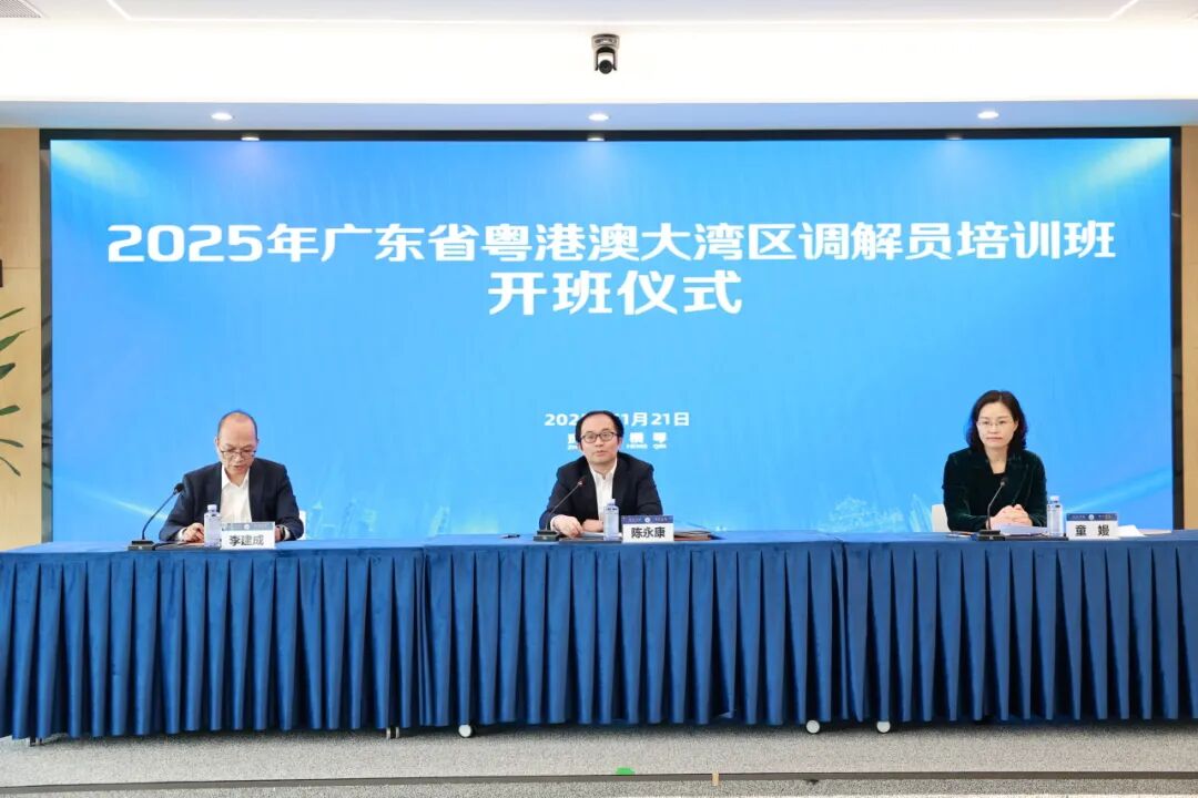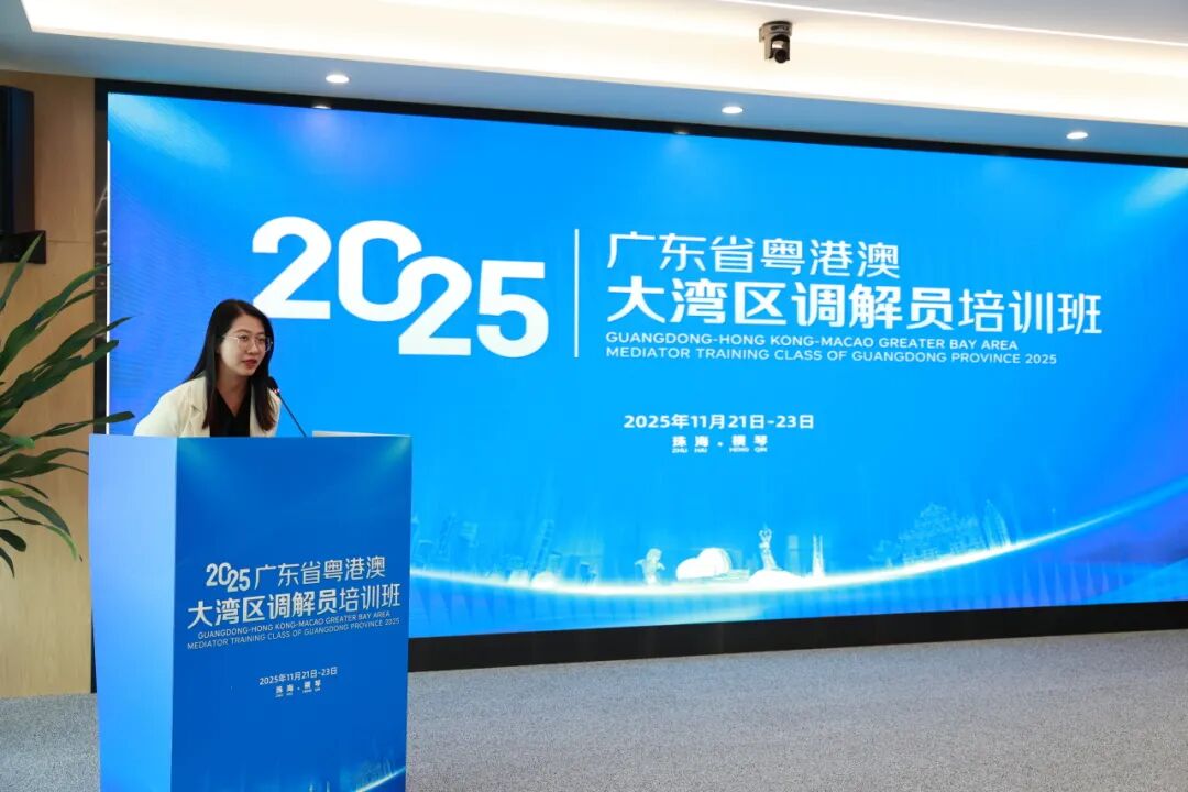 为深入贯彻落实党的二十届四中全会精神和习近平总书记视察广东重要讲话重要指示精神,努力建设一支高素质、专业化、国际化的粤港澳大湾区调解人才队伍,11月21日-23日,2025年广东省粤港澳大湾区调解员培训班在横琴举办。本次培训由广东省司法厅、广东省粤港澳大湾区调解中心主办,涉外中心具体承办。45名广东省粤港澳大湾区调解员候选人参加培训。省司法厅党委委员、副厅长陈永康出席开班式并作动员讲话。省司法厅党委委员、副厅长陈永康,珠海市司法局党组书记、局长童嫚出席开班仪式。开班仪式由省司法厅人民参与和促进法治处处长李建成主持。