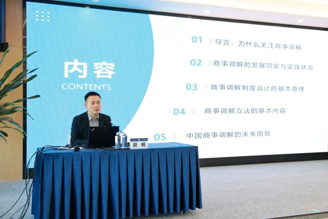 司法部调解理论研究与人才培训基地秘书长、湘潭大学法学学部副教授段明系统梳理了中国商事调解从“依附性发展”到制度独立的演进路径,指出当前商事调解组织在登记管理、收费机制、协议效力等方面的现实困境。他强调,推动商事调解专门立法是当务之急,应明确组织性质、登记管理、收费标准,并逐步赋予调解协议更强执行力,以对接《新加坡调解公约》国际趋势。