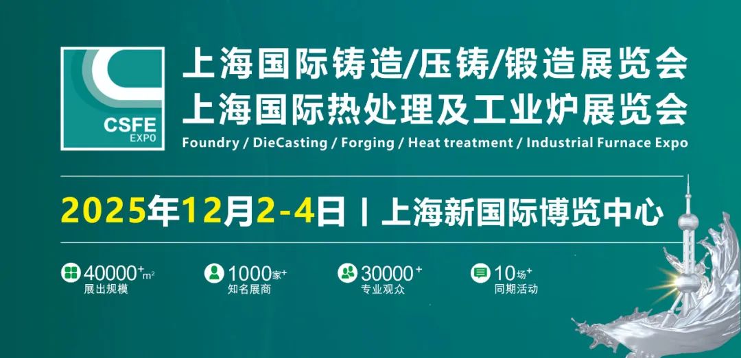 第21届上海国际铸造/压铸/锻造/热处理/工业炉展览会于2025年12月2日-4日在上海新国际博览中心盛大开幕。1000家相关企业齐聚,预计展览面积40000平方米,超过30000名专业观众。产品、材料和设备的一站式采购平台!