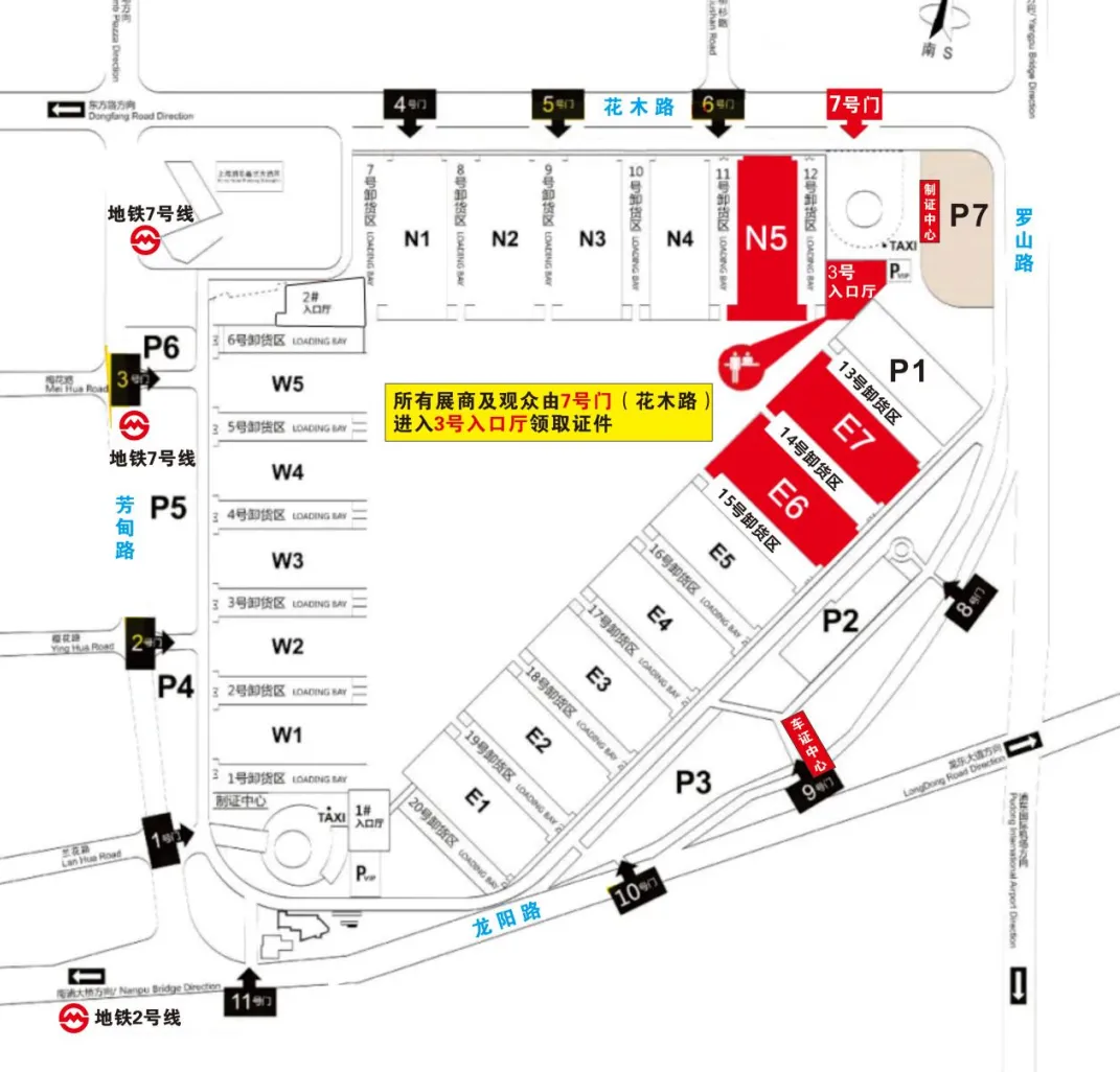 地铁:乘2号线至龙阳路站下,步行至展馆或换乘7号线至花木路站下车