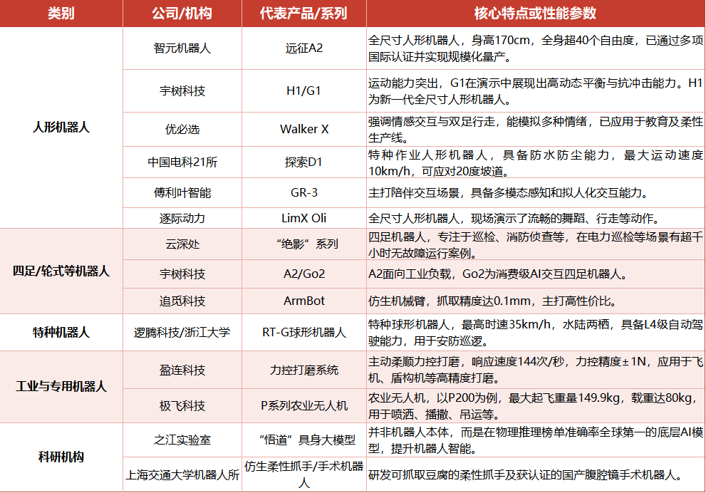 以下是根据公开信息整理的部分国内机器人领域代表企业及产品: