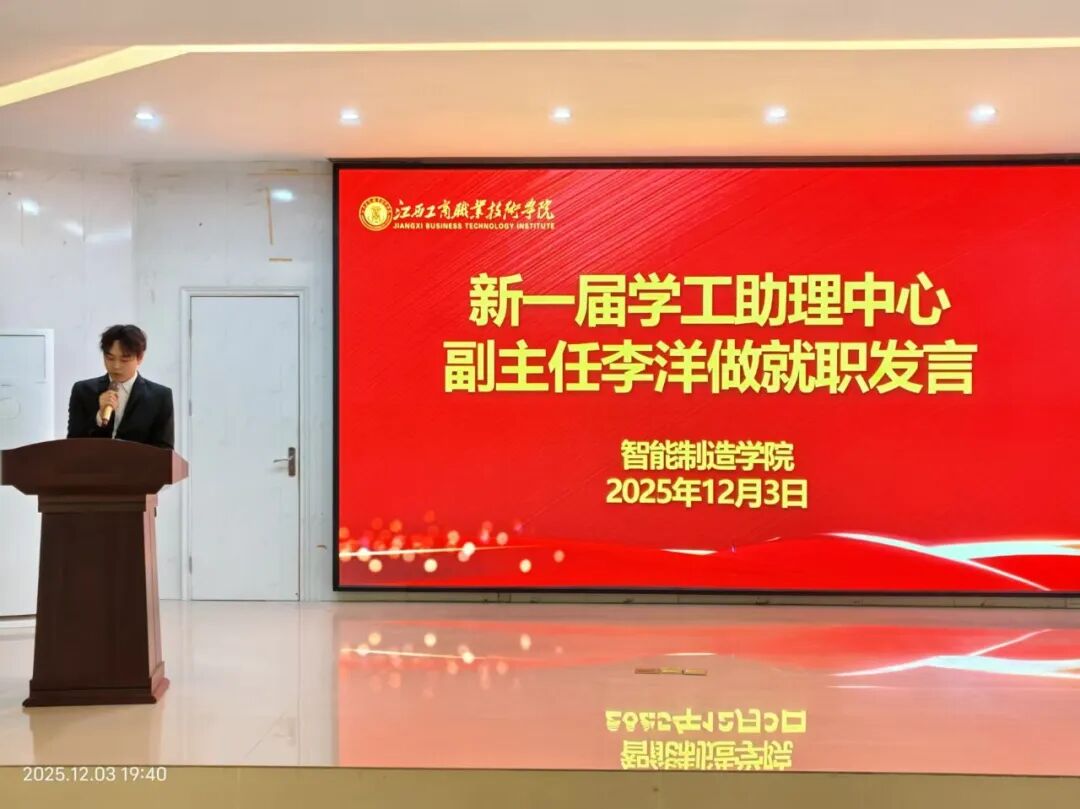 12月3日,江西工商职业技术学院智能制造学院第一次学工助理中心换届大会在北308教室隆重召开。学工助理中心主任、学工科长华教铮,学院团总支副书记郭伟华,各班级代表及学工助理中心全体成员齐聚一堂,共同见证了这一承前启后、凝聚共识的重要时刻。