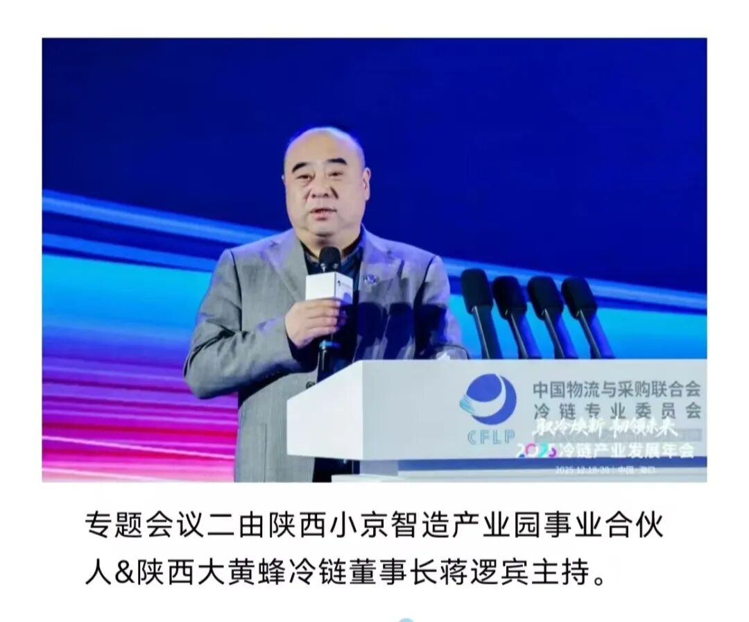 陕西小京智造产业园作为冷链产业的重要参与者,受邀出席本次盛会。园区事业合伙人、陕西大黄蜂冷链董事长蒋逻宾先生更是担任了年会专题会议二的主持嘉宾,在行业交流的核心环节发出小京智造的声音。