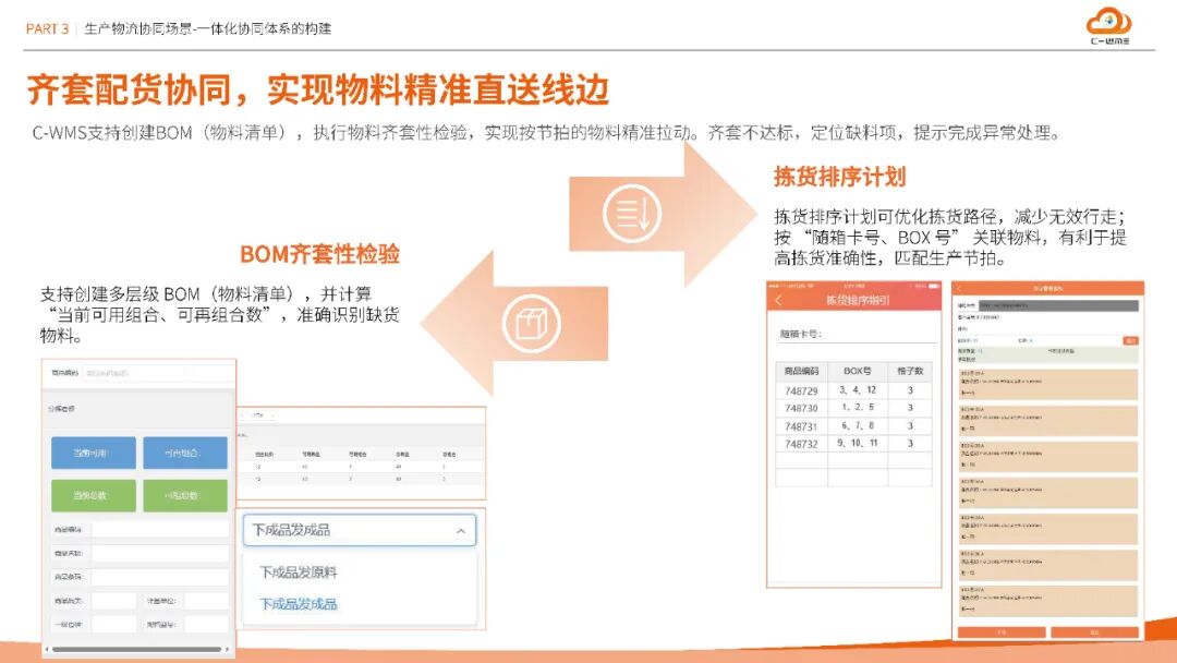 WMS与MES深度集成建立的线边仓预警体系,通过实时监控物料消耗节拍,自动触发A/B/C类物料补货指令,实现JIT准时制配送。系统支持BOM齐套性检验,精准计算"当前可用组合数"与"可再组合数",将物料齐套配货准确率提升至新高度,有效减少产线等待与停线损失。