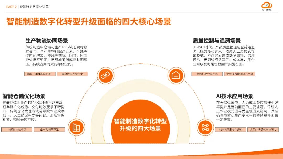 本白皮书聚焦智能制造领域物流与供应链的数字化转型路径。方案核心价值在于应对工业4.0环境下SKU激增、订单碎片化、交付时效严苛等挑战,通过"软件平台+智能策略+硬件集成+数据驱动"四位一体模式,构建覆盖采购-生产-仓储-配送-终端全链路的数字化体系。