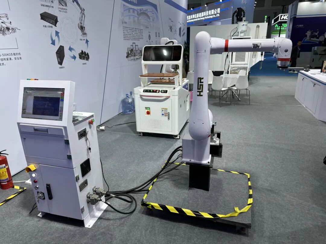 本次展会期间,华中数控还展示了机器人柔性工作站,具备高效灵活,安全易用等诸多优势;机器人与料仓紧凑结合,大幅节省生产空间,支持快速部署与产线调整;配备专用软件与机加上下料专用工艺包,支持线上调试、在线仿真降低编程门槛,实时监控产线信息。
