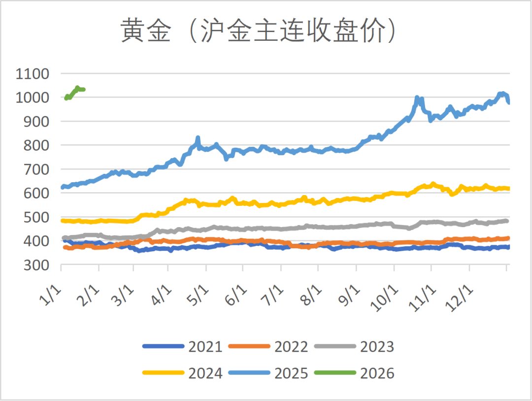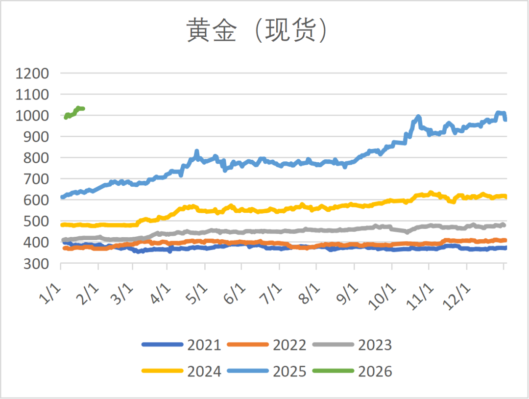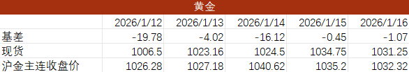 本周周内金价震荡上行,沪金主连收盘价1032.32元/克,上海有色网现货价格1031.25元/克,基差-1.07元/克。