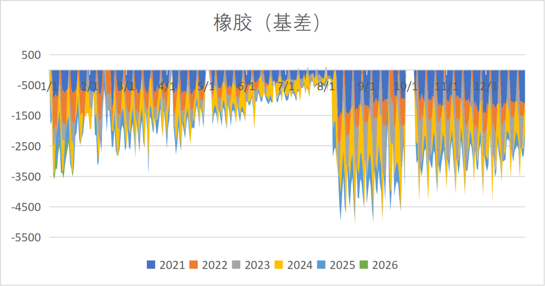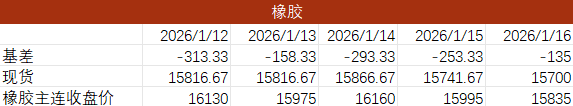 本周周内橡胶价格震荡下行,橡胶主连收盘价15835元/吨,上海有色网现货价格15700元/吨,基差-135元/吨。