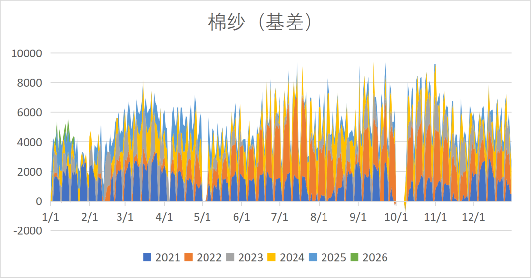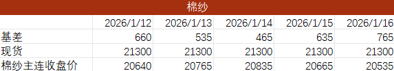 本周周内棉纱价格震荡下行,棉纱主连收盘价20535元/吨,上海有色网现货价格21300元/吨,基差765元/吨。