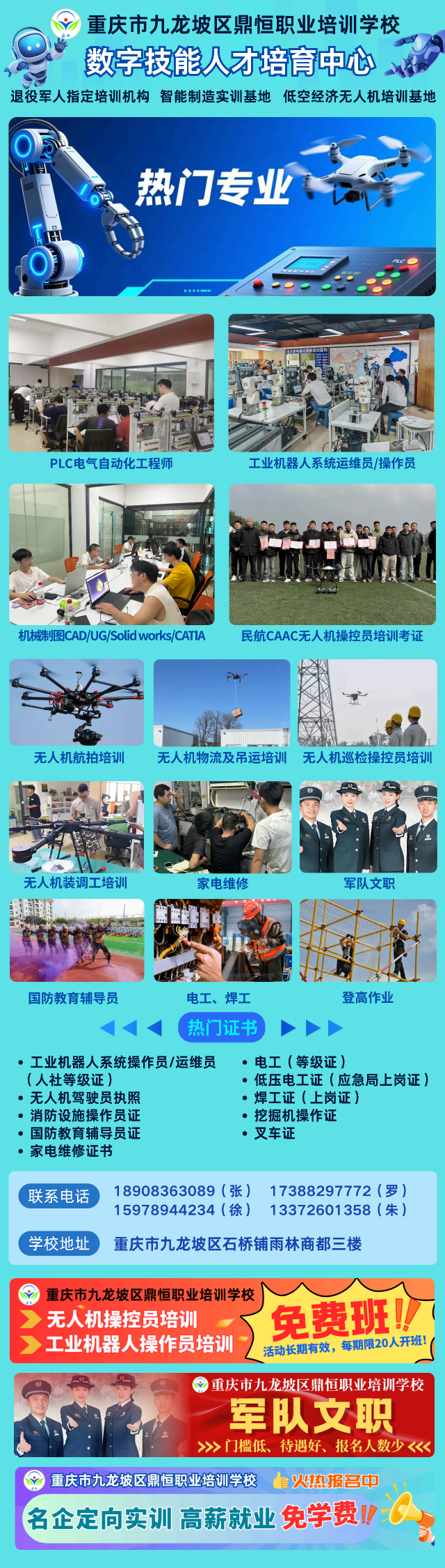 怕自己零基础学不会?怕老师顾不上、问题没人解?来鼎恒职校,这些顾虑全打消!我们的校长邓社平,是重庆市职业能力建设领域的“智库专家”,带着拥有多年一线实战经验的教学团队,把跑项目、调设备的实操经验揉进每一节课,确保教的内容与企业当下需求完全同步。