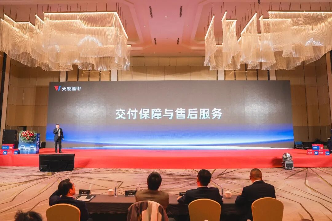 天能锂电交付保障与售后服务负责人刘存民,随后从交付保障与售后服务方面,向大家介绍了天能驻车锂电池的生产质量与售后保障体系,令与会的运营商都能放心经销天能新品驻车锂电池,大胆地开拓新的销售区域。