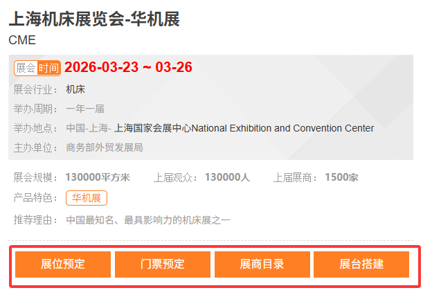 上海机床展览会-华机展CME【展位预定、门票预定、展商目录、展台搭建、差旅行程、签证、翻译、物流运输、补贴申报】
