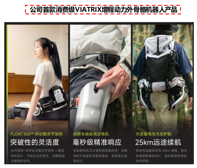 技术驱动的外骨骼机器人行业龙头 ,产品在全球范围内广泛部署。杭州程天科技成立于2017年 ,致力于包括核心算法与核心元器件在内的外骨骼机器人技术的研发与应用 ,目前专注于康复与养老领域 ,通过结合人机交互技术、人工智能技术、数据分析以及云计算为医疗康养机构和个人用户提供智能化产品和解决方案 ,已形成覆盖神经康复、肌骨康复、行动代偿等全场景医疗级产品矩阵 ,在全世界范围内外骨骼部署数量和使用次数行业领先。公司将外骨骼应用从医疗康复场景延伸到居家社区与户外休闲 ,2025年上市的易行EasyGo助力外骨骼机器人系列产品 ,定位老年助行、户外运动等消费场景 ,产品采用轻量化碳纤维材料与仿生结构 ,无需电源即可提供步行助力 ,首发产品在网店15秒售罄。