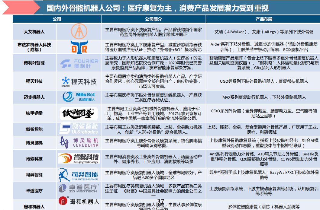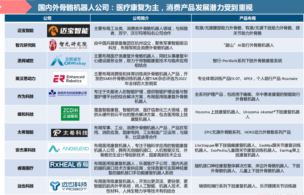 (一)国内外骨骼机器人公司:医疗康复为主,消费产品发展潜力受到重视
