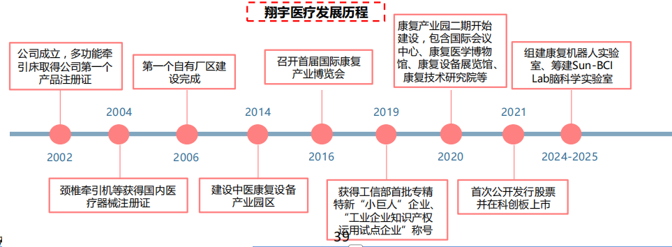 翔宇医疗:康复设备龙头企业 ,提供全系列康复产品及整体解决方案。公司成立于2002年 ,于2021年3月在科创板上市。公司作为康复器械领域的综合性产品制造和服务供应商 ,是一家致力于康复医疗器械研发、生产、销售和服务为一体的国家高新技术企业。作为中国康复 医疗器械行业内的研发引领型企业 ,主要为全国各级综合医院、康复医院、基层诊疗机构等全国各级医疗机构 ,养老机构 ,残疾人康复中心 ,福利院机构客户提供全系列康复产品及整体解决方案。2024年全年公司收入7.44亿元( -0. 17%) ,归母净利润1.03亿元( -54.44%) ,康 复器械行业招投标有所恢复 ,24Q4公司单季度收入达到上市以来最高水平。2025年前三季度公司实现营收5.37亿元( +6% ),归母净利润 0.44亿元( -40.09%)。利润端下降幅度较大 ,主要由于销售费用以及研发费用较上年同期有所增加 ,导致净利润减少。