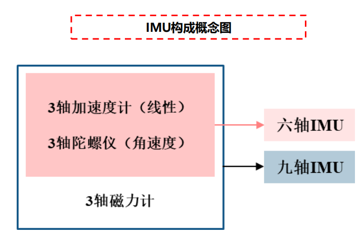 2、IMU为当前主流技术路径,由加速度计、陀螺仪、 磁力计构成