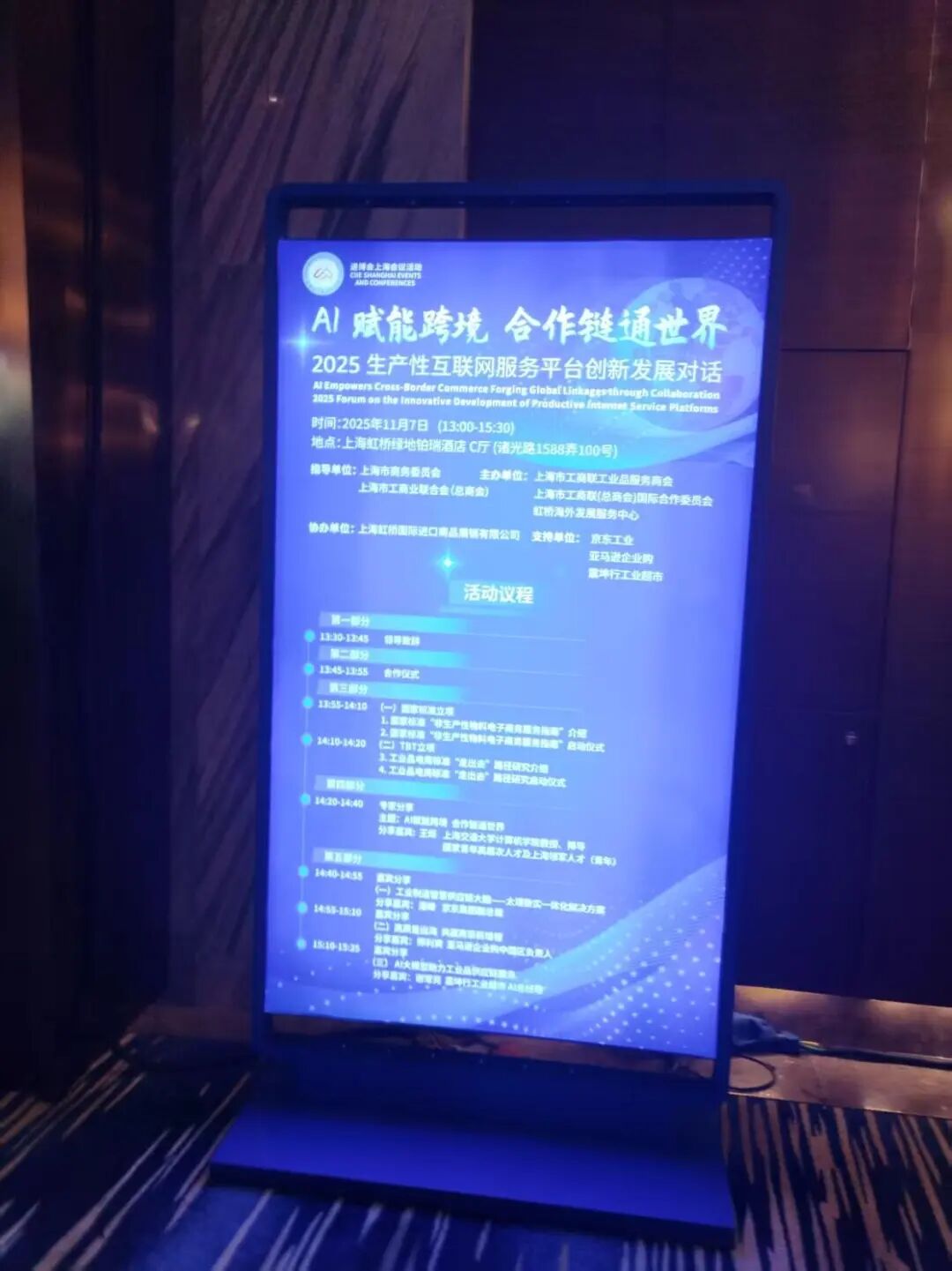 2025年11月7日下午,以“AI赋能跨境,合作链通世界”为主题的2025生产性互联网服务平台创新发展对话活动成功举办。据悉:本次活动由上海市商务委、上海市工商联共同指导,由上海市工商联工业品服务商会、上海市工商联(总商会)国际合作委员会及虹桥海外发展服务中心联合主办,聚焦生产性互联网服务平台国际化、智能化发展路径,通过成果发布、合作启动、路径研讨与技术展示,搭建了推动产业链供应链优化升级的高层次交流平台。京东工业、亚马逊企业购、震坤行等200余家工业品电商平台及企业代表,共同探索AI驱动下的全球供应链协同新范式。泷澹实业(上海)有限公司、洛浥企业管理(上海)中心(有限合伙)、泷澹工业互联网中心、泷澹未来工业网、泷澹未来制造网、泷澹新能源网、泷澹环保产业网、泷澹新材料产业网、泷澹新能源汽车产业网、泷澹机器人产业网等有关专家与领导非常荣幸现场参与本次活动。据悉制度创新与标准引领方面:构筑“数字服务之路”规则软联通活动以“生产性互联网服务平台走出去合作”及两项关键标准研究的启动拉开序幕,凸显平台在推动与国际贸易规则对接、标准互认方面的先行先试作用。上海市质量和标准化研究院副院长徐雷系统解读了国家标准《非生产性物料电子商务服务指南》,该标准作为国内首个系统规范MRO电商全流程的服务指南,覆盖平台建设、交易规则、物流配送与质量追溯等环节,标志着我国在工业品电商标准化领域迈出坚实一步,为产业“走出去”提供了可复制的制度型成果。上海市工商联工业品服务商会秘书长陈怡发布的《工业品电商标准“走出去”路径研究》可行性方案,聚焦应对技术性贸易措施(TBT),提出从被动应对到主动引领的标准国际化策略,为中国工业品电商突破国际贸易壁垒、实现“产品+标准+服务”输出提供了系统性路线图,形成了具有示范意义的制度开放实践。