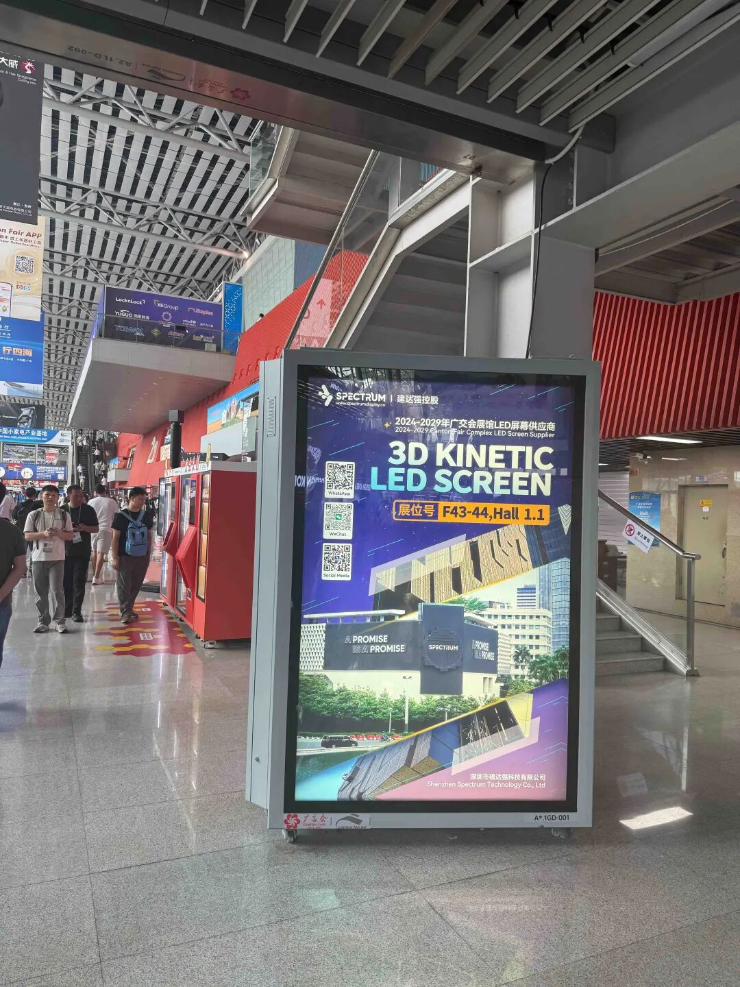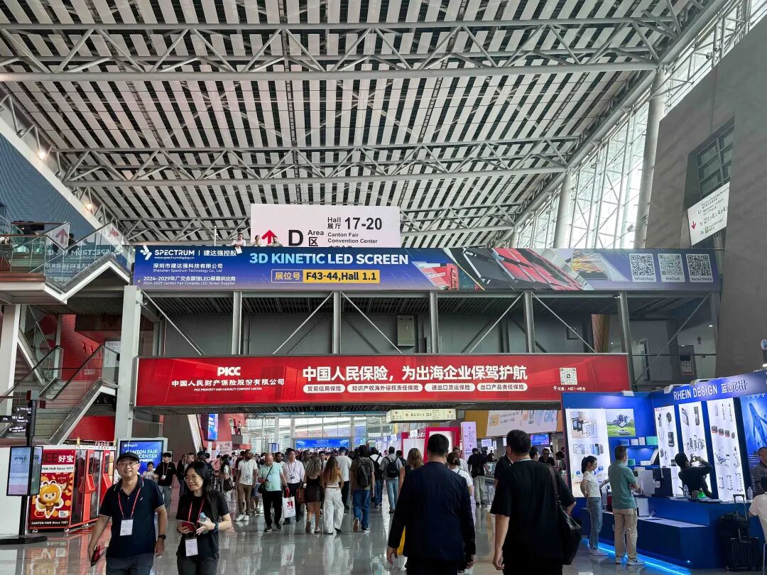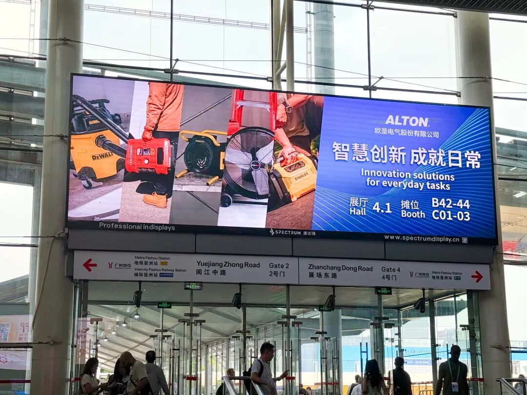 作为广交会重要合作伙伴,SPECTRUM 赞助的 LED 显示屏凭借出色显示效果脱颖而出。这些显示屏安装于展馆入口、中央通道、公共服务区域等高流量位置,画面清晰生动,成功吸引每一位过往者的目光。与此同时,品牌广告位战略性覆盖各大展馆,确保 SPECTRUM 的品牌标识及核心优势在整个展馆内随处可见。这种全方位曝光不仅强化了受众对品牌的认知,更让 SPECTRUM 成为 LED 显示行业中值得信赖的领军品牌。