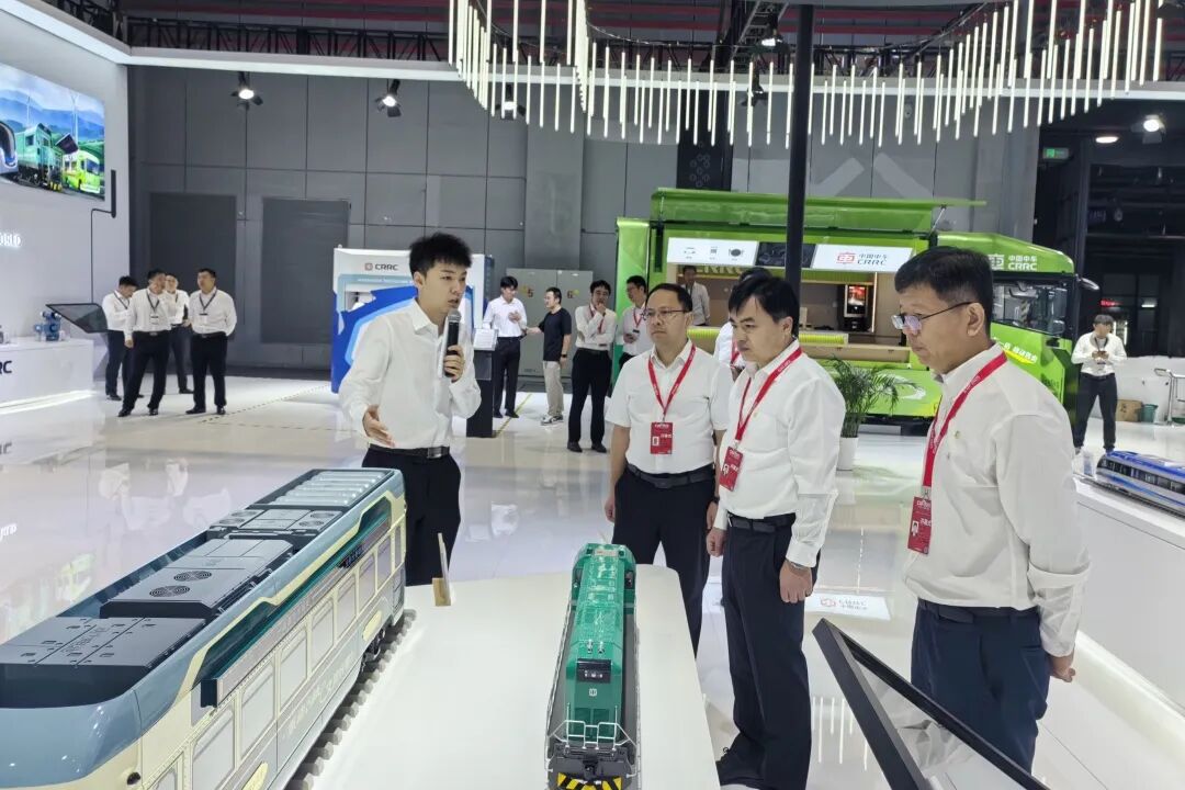 展会开幕当天,中国中车总经济师谭沐,中车戚墅堰公司副总经理、财务总监包洪涛等领导到现场调研,详细了解了参展展品,询问展品技术、性能、运用等相关情况。