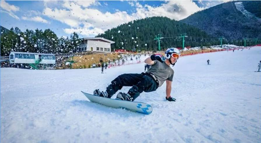 △香格里拉七星雪滑雪场的游客们正驰骋雪道
