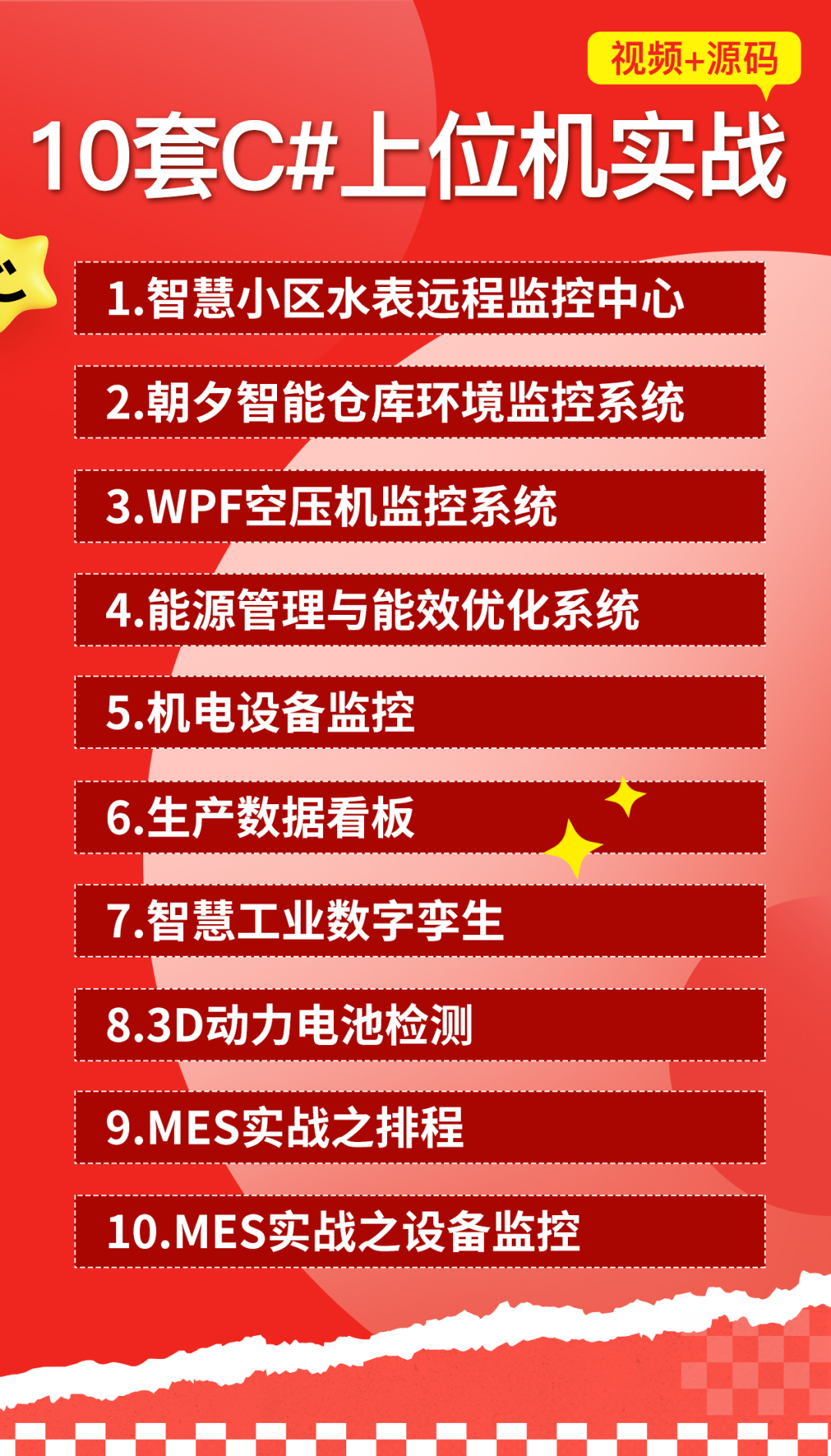 我转岗后,开发效率没降,项目落地快,成就感直接拉满。工业4.0风口就在这,别浪费手里的技能,赶紧冲上位机,解锁高薪新赛道!这里给大家来了超级大集合,《10套C#上位机实战》视频+源码,如下图!