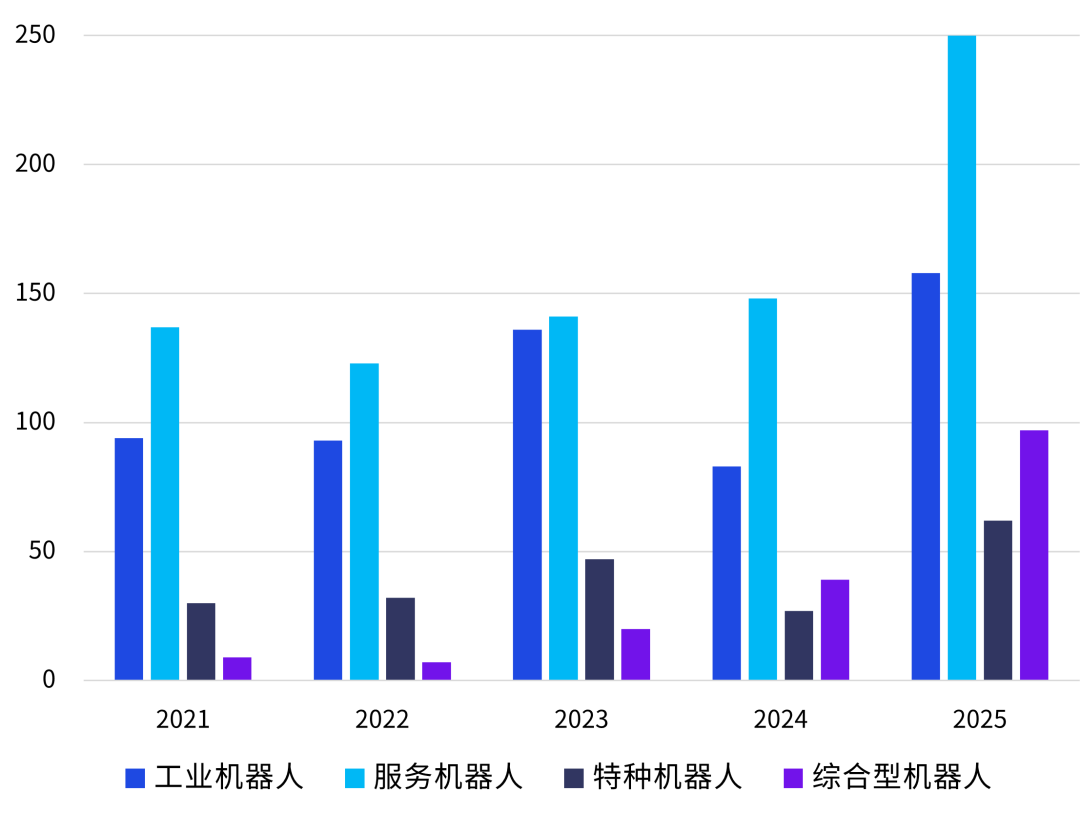 图4:2021-2025年场景机器人投资事件趋势(单位:笔数)