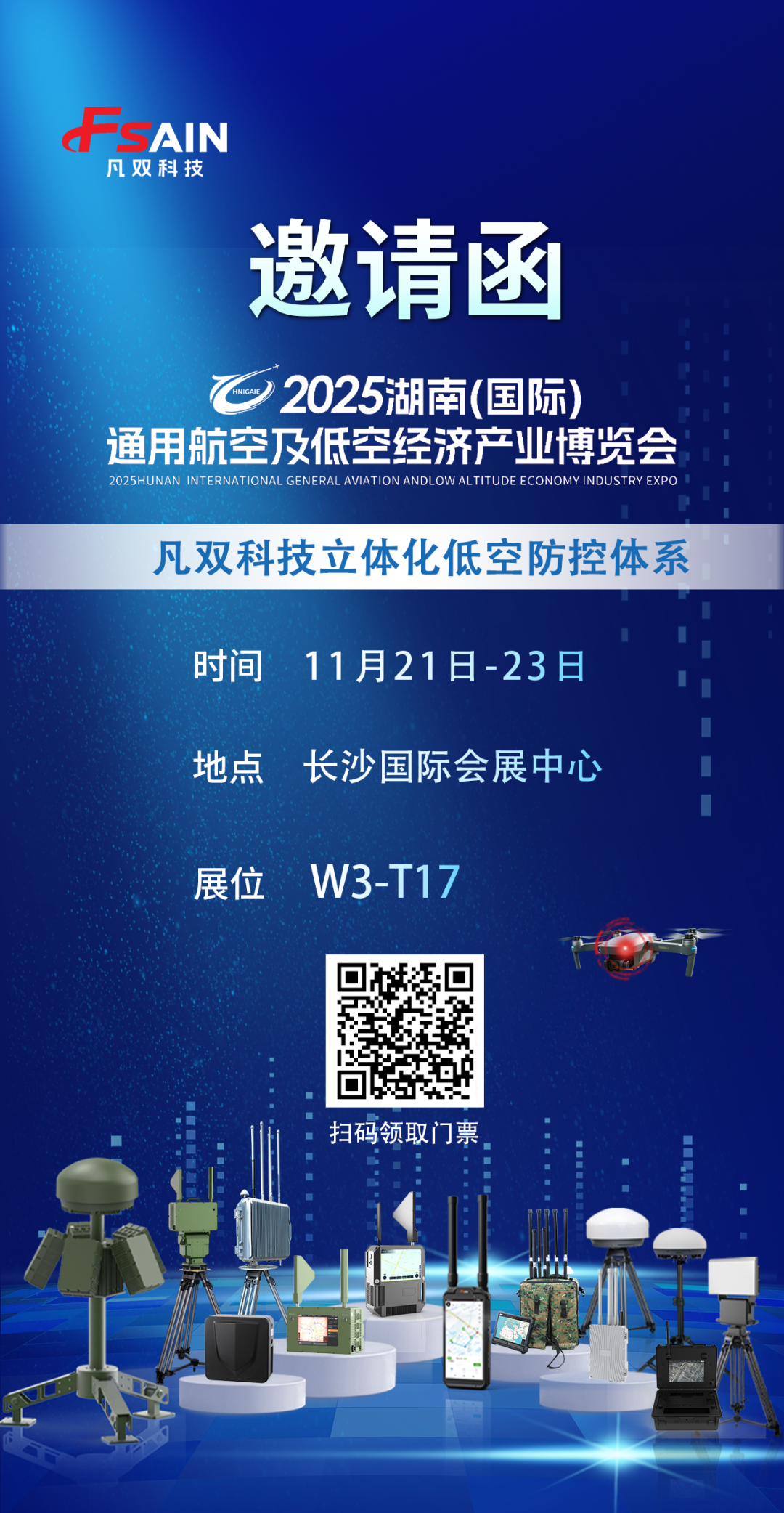 11 月 21 日至 23 日 2025 湖南(国际)通用航空及低空经济产业博览会将在长沙国际会展中心盛大开幕,凡双科技诚邀您莅临展位,共探低空安全保障体系建设,共促产业有序发展。