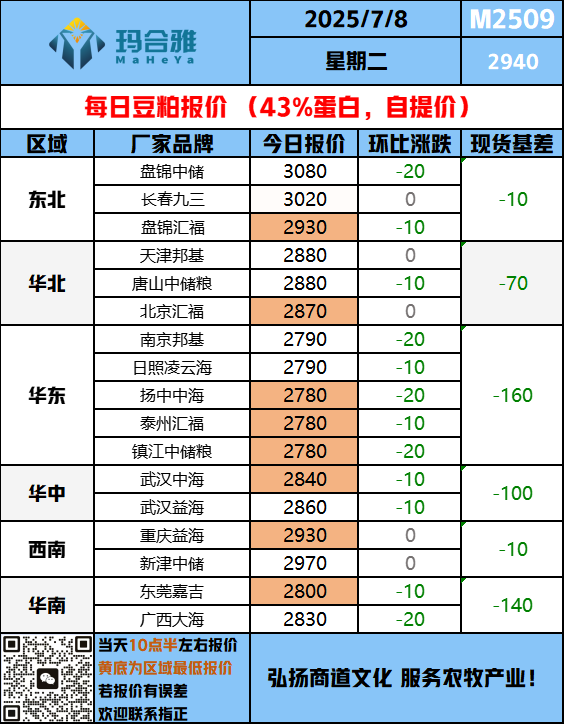 2025年7月7日成交方面,全国主要油厂豆粕成交8.45万吨,较前一交易日增2.11万吨,其中现货成交5.45万吨,较前一交易日增0.31万吨,远月基差成交3.00万吨,较前一交易日增1.80万吨。开机方面,今日全国动态全样本油厂开机率为64.01%,较前一日下降2.15%。