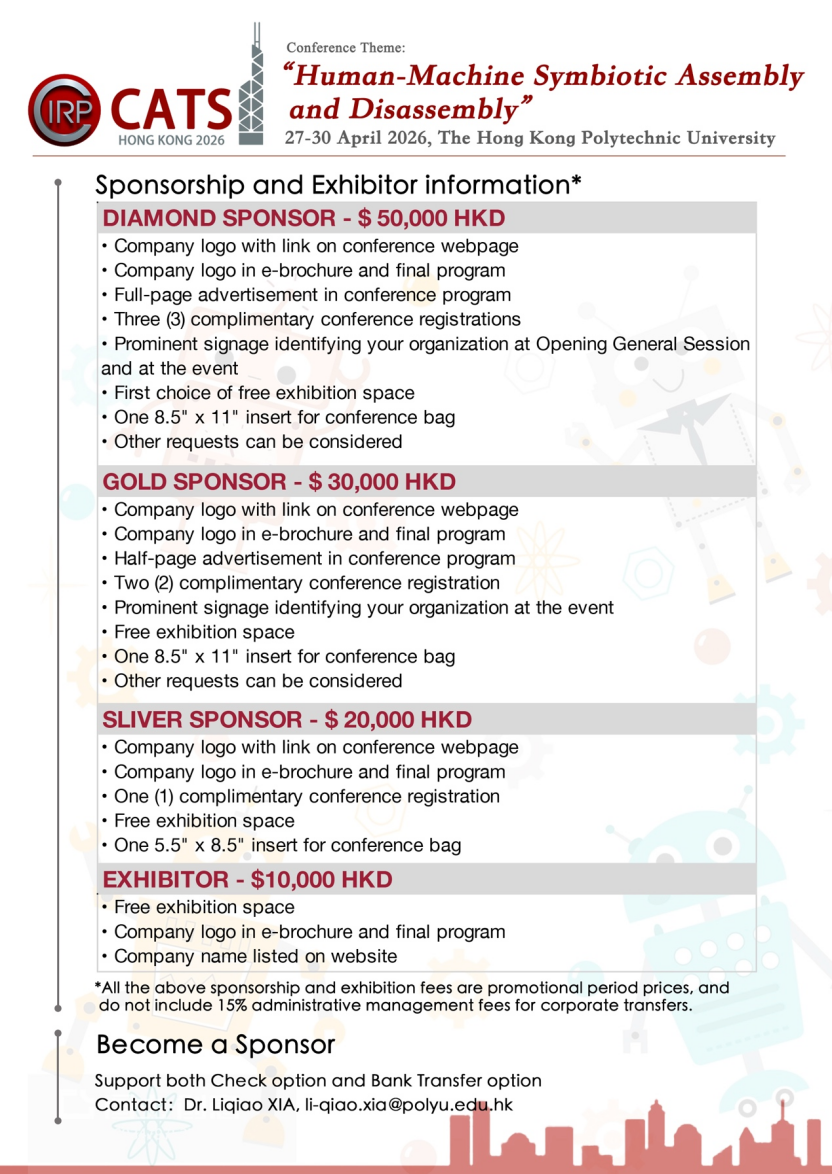 邀请相关企业参加第十一届CIRP装配技术与系统国际会议(CIRP CATS 2026),人机共生,智造未来!赞助事宜请联系会议联系人。