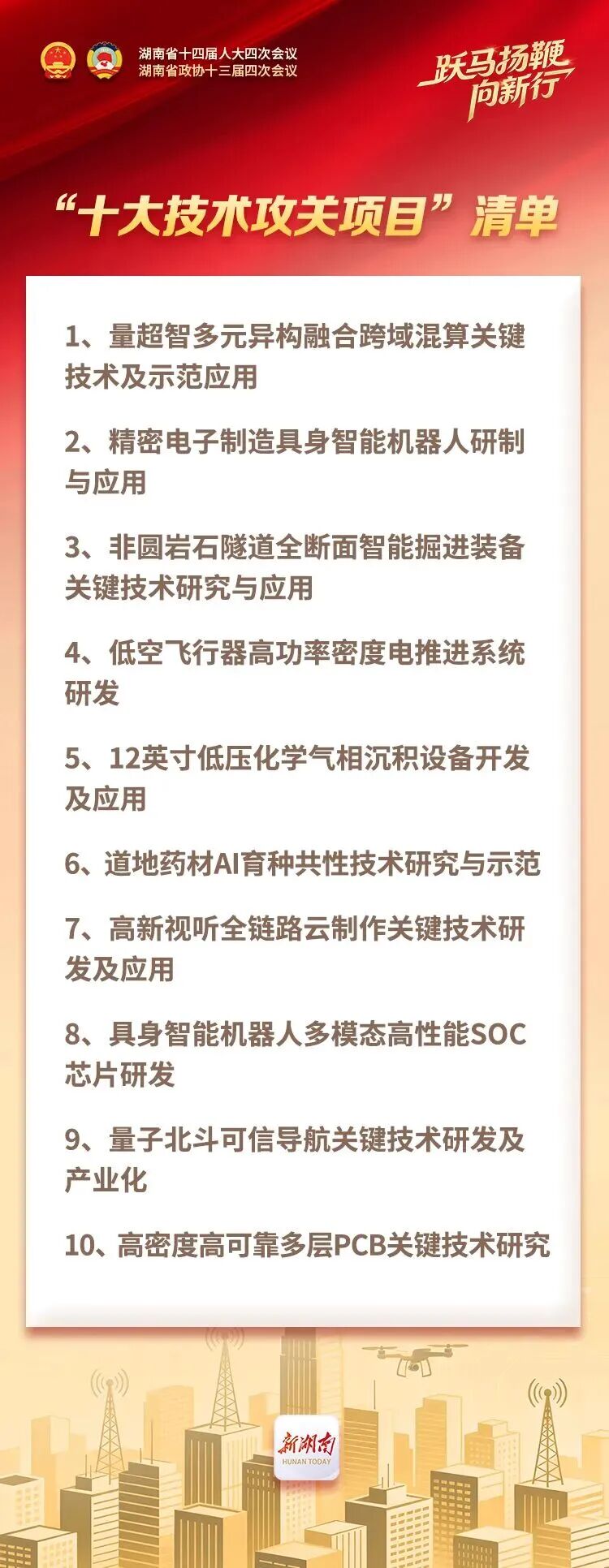 2026年湖南将持续实施“十大技术攻关项目”,推动湖南大学多元异构混算、铁建重工智能掘进装备、益阳奥士康科技PCB等关键技术取得重大突破。前瞻布局一批未来产业领域技术攻关项目。积极组织高水平研究机构、龙头企业承担国家重大科研任务,为高水平科技自立自强贡献湖南力量。来源:湖南日报