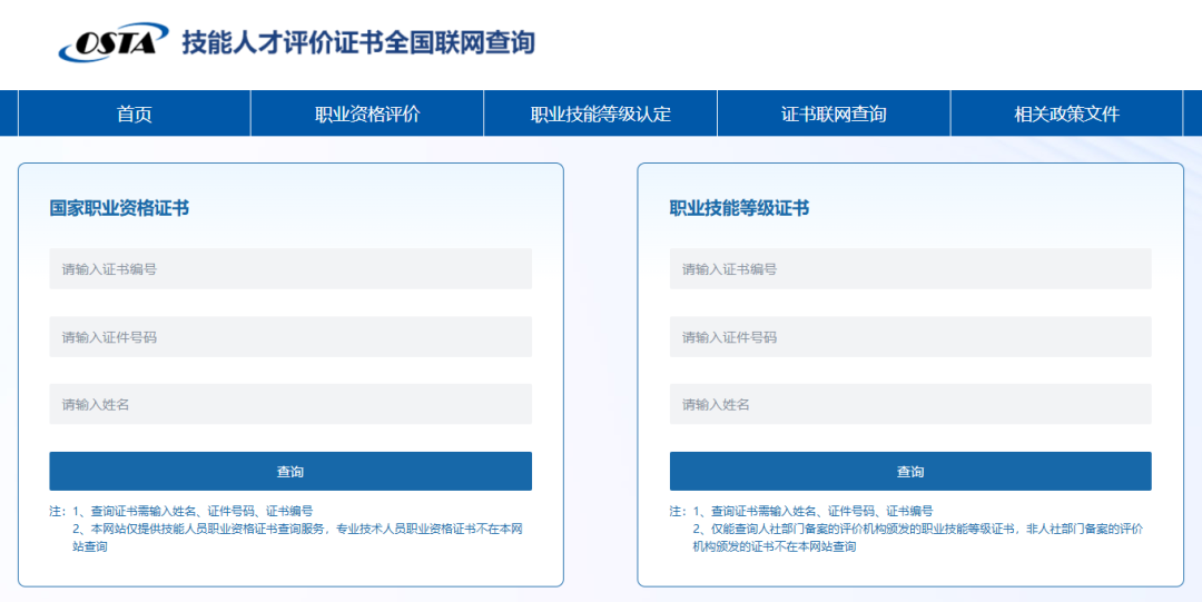 全国职业技能等级证书统一查询网站:http://jndj.osta.org.cn