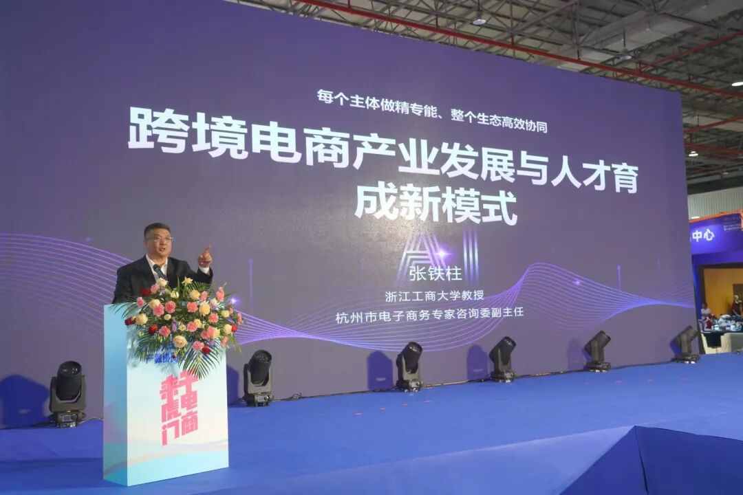 浙江工商大学张铁柱教授作题为《跨境电商产业发展与人才育成新模式》的主题分享。他重点阐述了在数智化转型背景下,行业正经历从“人工决策”向“AI驱动的精准运营”、从“线性供应链”向“数智化协同网络”、从“单一企业转型”向“生态化能力共享”三大核心趋势演变,推动行业效率提升与中小企业全球化参与。他强调,构建“生态型企业”是未来竞争关键,其核心在于以数据链为中枢、社会化分工为载体,实现要素精准对接与能力最优配置,从而形成开放、协同、共生的跨境电商产业与人才生态体系,推动行业可持续发展。