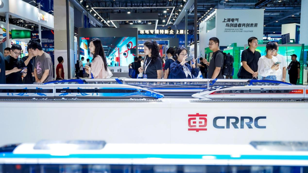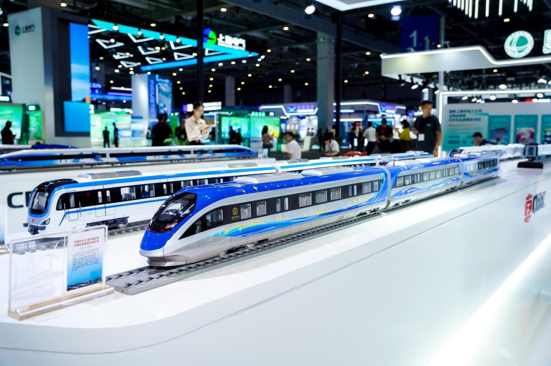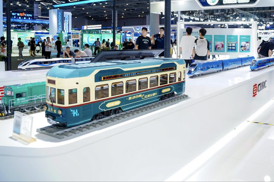 在中国中车展台,一系列更高速度、更高标准、更绿色智能的“明星”列车映入眼帘,全面展现了中国中车在轨道交通领域持续全面领先、全链领跑的硬核实力。