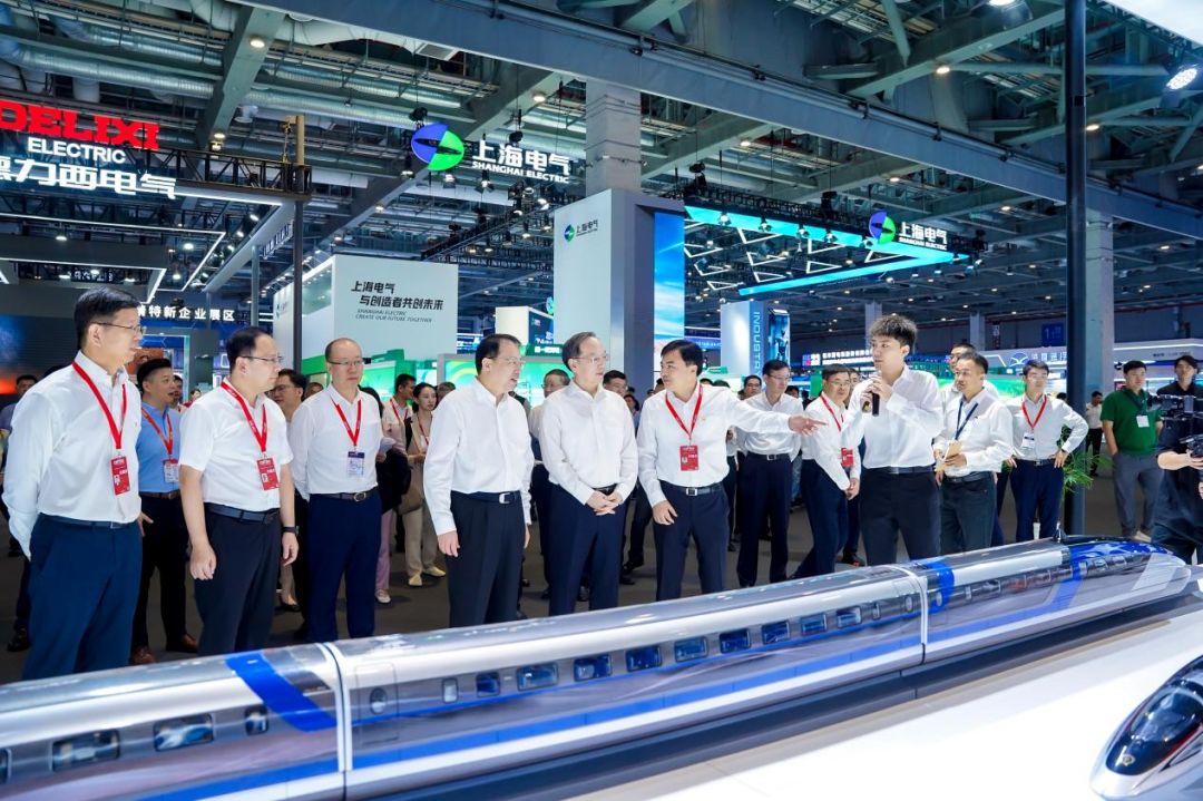 展会开幕当天,中国中车展台吸引了来自国家部委、当地政府领导,国内外各领域的行业专家、企业代表以及媒体记者驻足参观交流。工业和信息化部党组书记、部长李乐成,上海市委副书记、市长龚正等领导莅临中国中车展台,中国中车总经济师谭沐详细介绍了以时速600公里高速磁浮列车、CR450动车组为代表的轨道交通装备发展成果和未来应用前景。