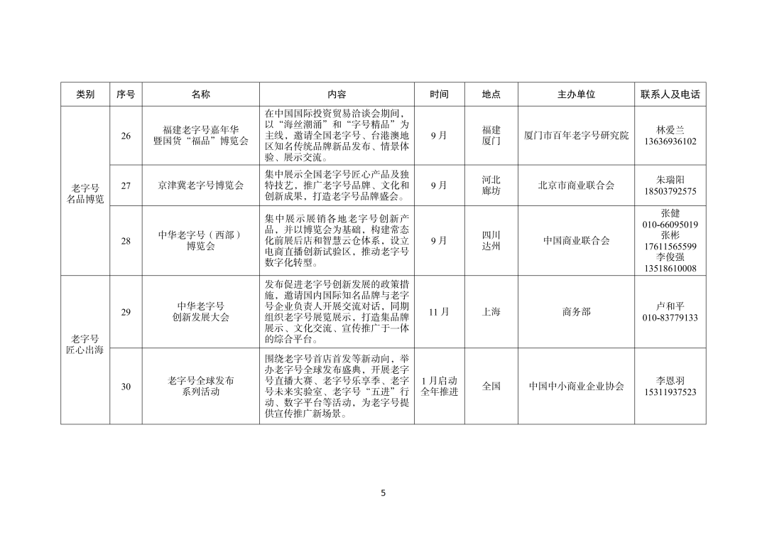 商务部组织确定了一批跨区域、全国性的重点活动(附件1)。各地和相关活动组织方要在坚持自愿原则的基础上积极组织老字号参与,避免增加企业负担。要坚持勤俭节约、安全生产有关要求,确保活动稳妥有序、取得实效。在相关活动中要规范使用“老字号嘉年华”标识(使用要求见附件2),充分利用“老字号数字博物馆”等平台加强宣传推广,推动成果转化。